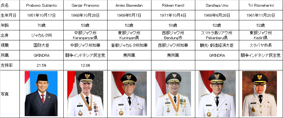 2024年の大統領選挙候補としては、今のところ上の6名が取り沙汰されているようです。