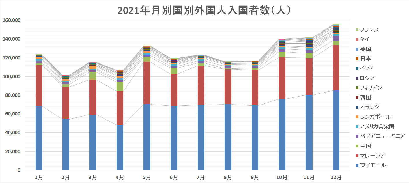 2021年国別外国人の入国者数